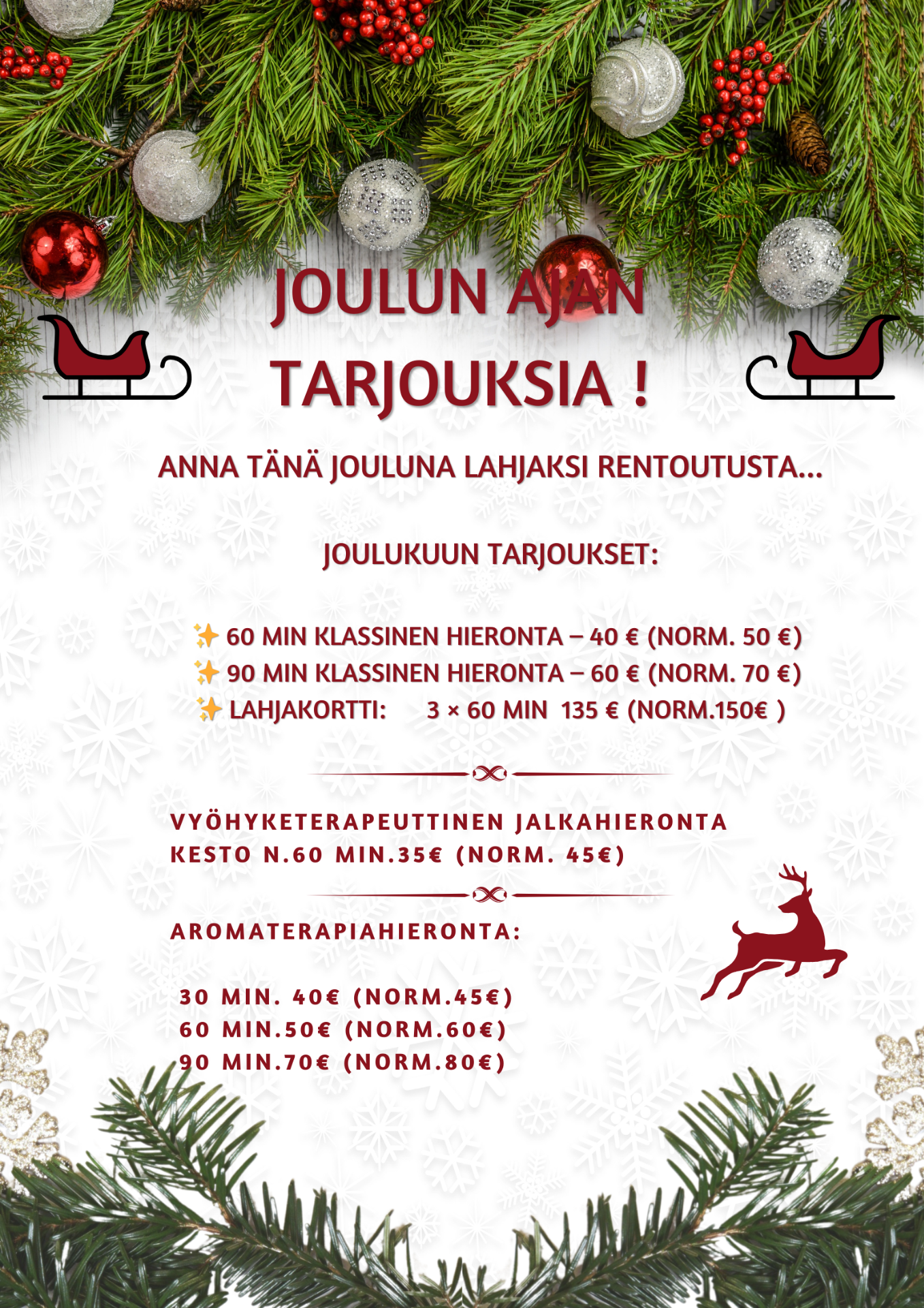 - Nyt uusille asiakkaille (1x hieronta) tutustumistarjous!